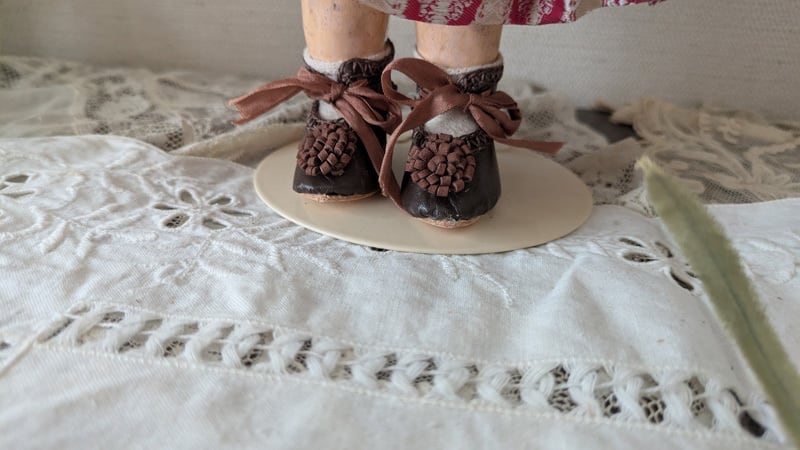スウェードで作った小さなロゼット飾りを甲につけました。